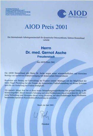 Die AIOD Deutschland ehrt Herrn Dr. Asche wegen seiner wissenschaftlichen