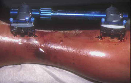 nach Quetschung. Zunächst wird die Fraktur mit dem Fixateur
