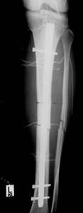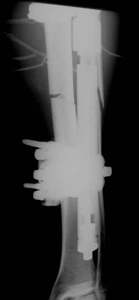 Unterschenkelfraktur mit schwerem Weichteilschaden