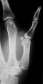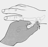 eingebracht. Durch den Zug am Daumen läßt sich die Bennetfraktur