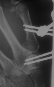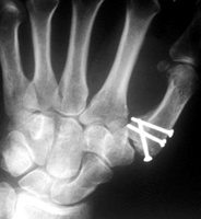 Handwurzelknochen und zwei weitere Schrauben den 1. Mittelhandknochen