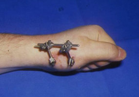 Kirschnerdrähten, Schrauben oder am einfachsten mit dem Minifixateur