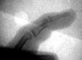 Trümmerfraktur des Daumenendgliedes. Alleiniger