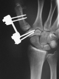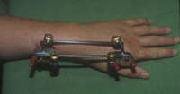 Die oben aufrufbaren Seiten zeigen Beispiele verschiedener Operationsverfahren. Es wurden Beispiele gewählt, die mögliche Stabilisierungen von Frakturen vorschlagen, wie sie oft im Bereich der Traumatologie vorkommen. Alle gezeigten Verfahren haben folgenden Grundsatz: 1. Weichteilschonend 2. Stabil aber dynamisch 3. Minimal invasiv 4. Bei Infektrisiko (offene Frakturen, Weichteilquetschung) immer erst den Fixateur externe und dann Verfahrenswechsel zum Verriegelungnagel. 5. Ausheilung wenn möglich und vom Patienten akzeptiert auch im Fixateur. 6. Am Unterschenkel ist bei offenen Frakturen der Fixateur die erste Wahl, am Oberschenkel in der Regel der Verriegelungsnagel. 7. Bei primärer Versorgung der Tibiafraktur mit dem Fixateur, sollte zu einem späteren Zeitpunkt der Verfahrenswechsel zum Verriegelungsnagel erwogen werden. der Verfahrenswechsel sollte innerhalb von 14 Tagen erfolgen. Zum späteren Zeitpunkt ist der Verfahrenswechsel risikoreicher. |