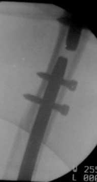 Eintrittspunkt für die Markraumeröffnung bei der retrograden Nagelung