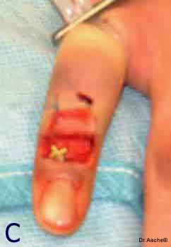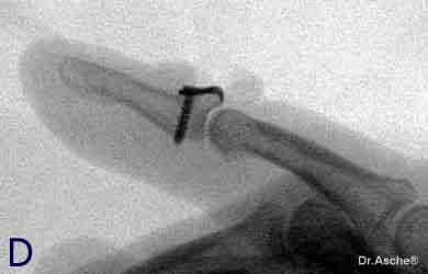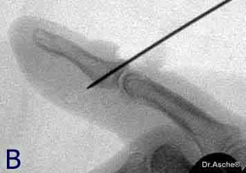 und mit einem 0,8 mm K-Draht fixiert. Der Draht muß exakt in der