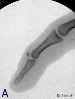 Knöcherner Strecksehenenausriss am re. 5. Fingerendgelenk.